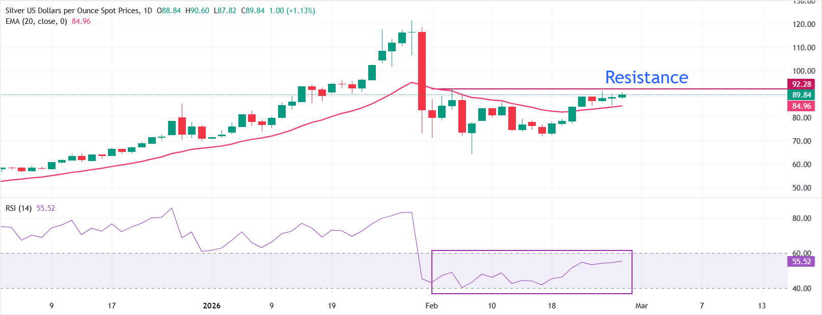 Geopolitical risks are also in play. US-Iran nuclear talks in Geneva have produced mixed signals, with Washington reportedly dissatisfied with progress and President Trump warning of possible military action. Separately, Trump announced plans for new 15% global tariffs after the Supreme Court struck down his earlier emergency tariff regime. Despite these risk-off undertones, the DXY is on track for a roughly 0.6% monthly gain in February, its first positive month since October, snapping a three-month losing streak.
