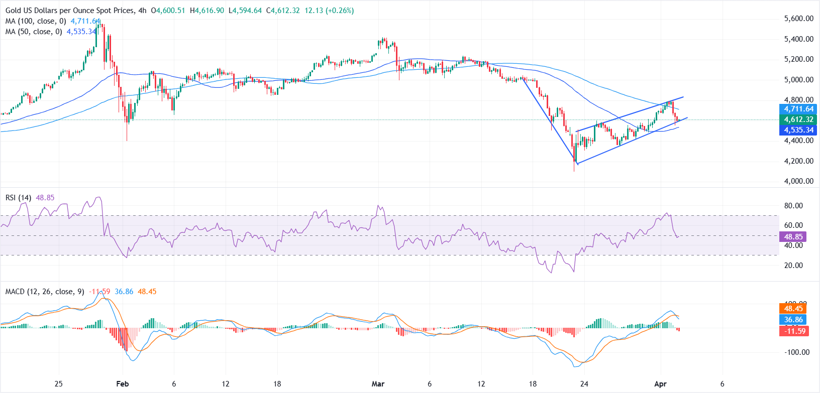At the time of writing, XAU/USD is trading around $4,612, down nearly 3.0% on the day, pulling back from a two-week high near $4,800.
