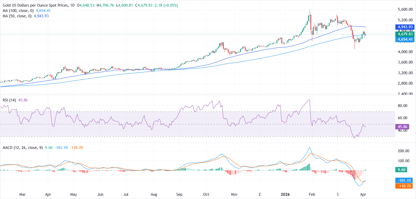 If XAU/USD finishes on a daily basis below the 100-day SMA, this clears the path to challenge $4,600. Below here, the next area of interest is the April 2 daily low at $4,553, ahead of $4,500. Conversely, if Gold rallies past $4,700, the first area of supply overhead is the 20-day SMA at $4,755. On further strength, $4,800 lies up next.
