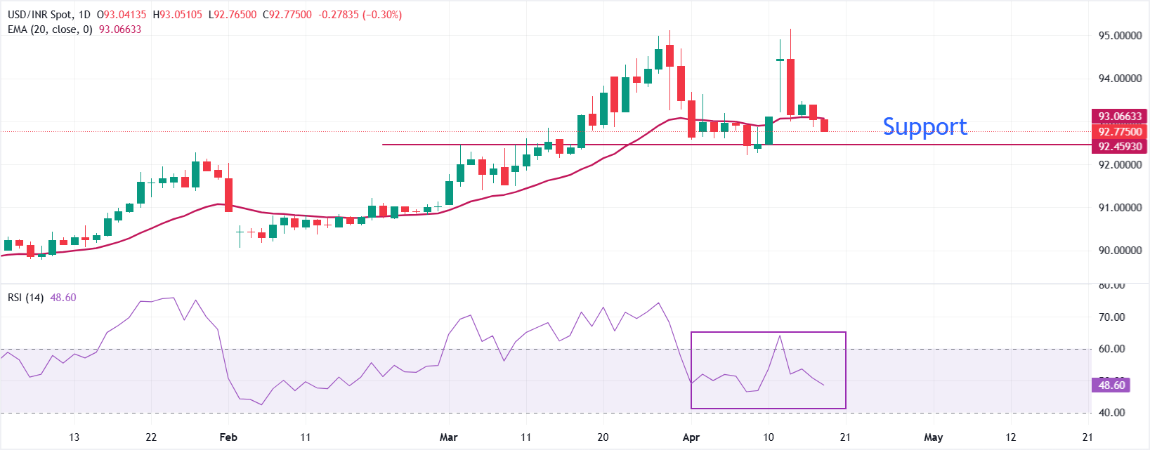 Meanwhile, capped WTI Oil prices around $90 from the past few days after surging above $100 is also offering support to the Indian Rupee. Currencies from economies, such as India, which rely heavily on oil imports to meet their energy needs, take a recovery route when oil prices start correcting.