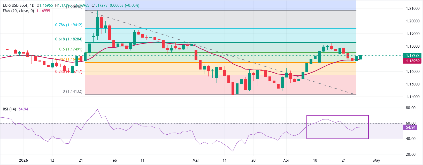 - RSI turns lower, confirming growing bearish momentum pressure.