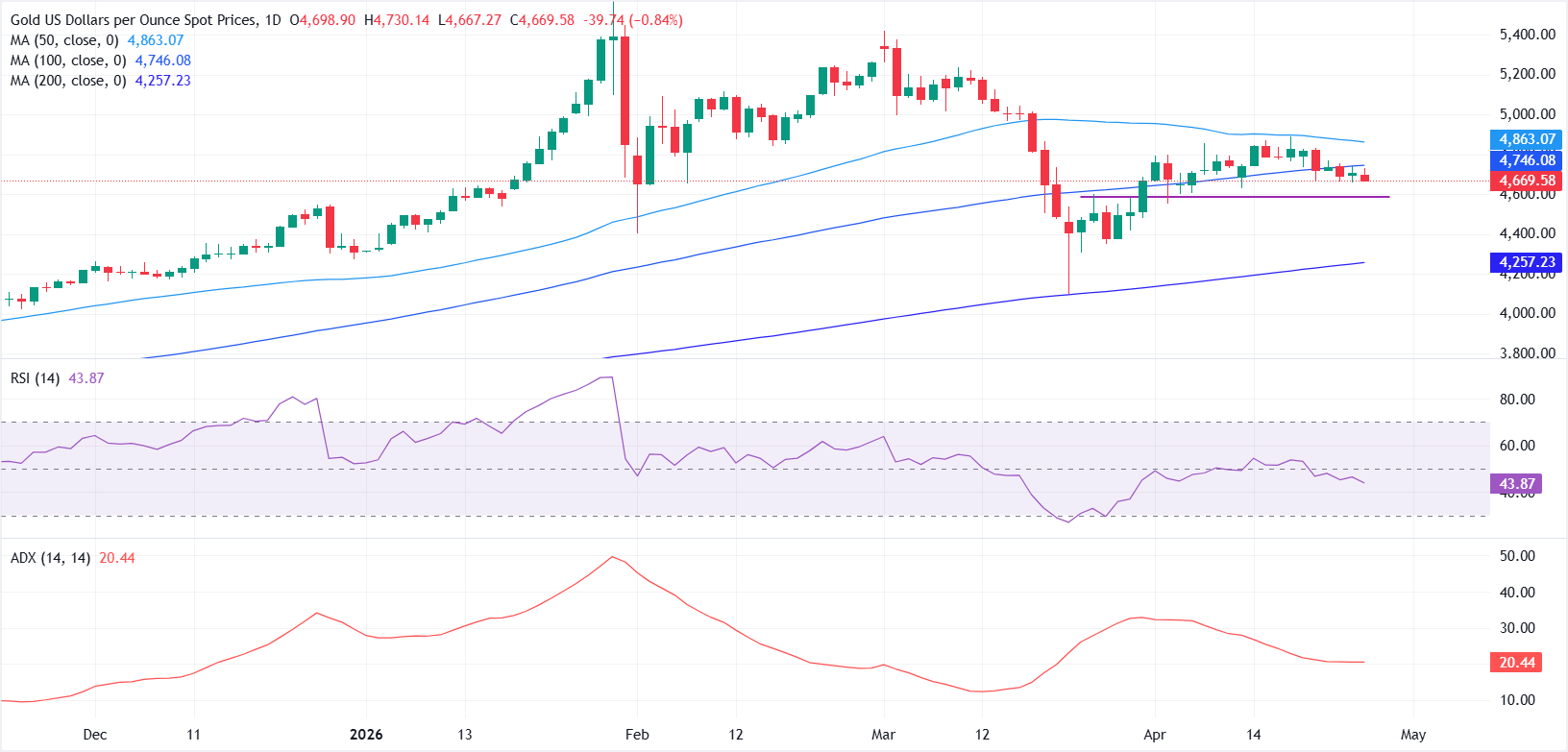 - Silver trades near the confluence of 20- and 100-day SMAs around $75.60.