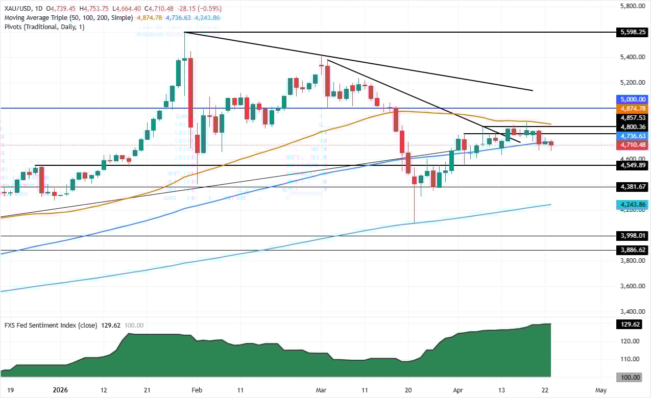 Gold seems vulnerable near $4,700; break below ascending channel support awaited