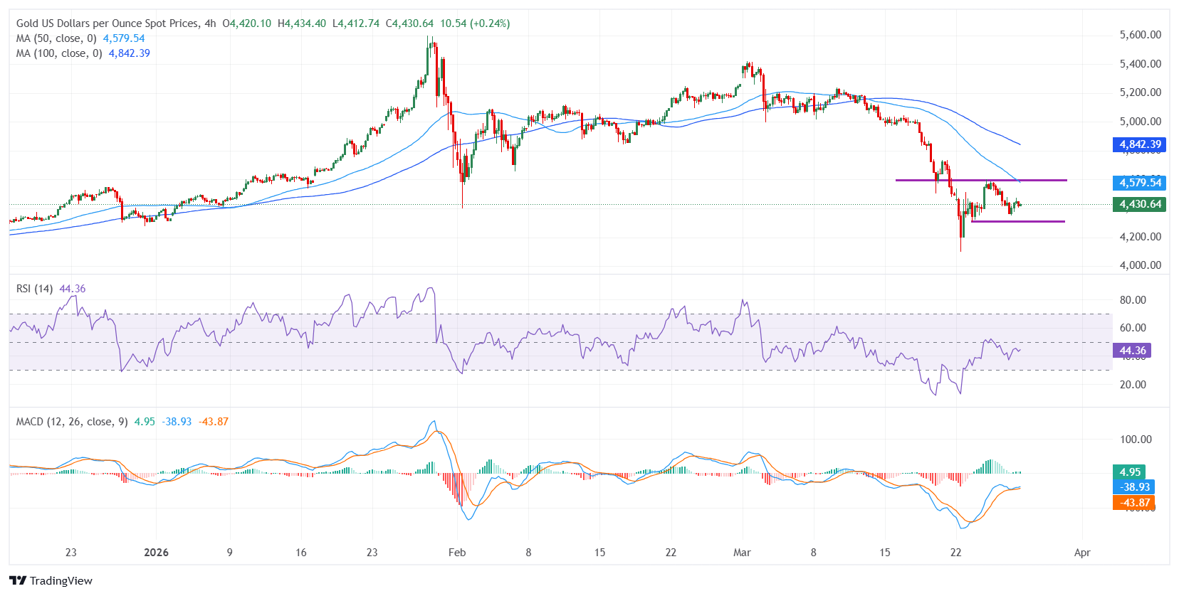 Gold (XAU/USD) gains some positive traction during the Asian session on Friday and reverses a part of the previous day's fall to the $4,350 area. The US Dollar (USD) edges lower after US President Donald Trump announced that he will delay strikes on Iran’s energy infrastructure and extended the deadline to reopen the Strait of Hormuz until April 6. This turns out to be a key factor offering some support to the commodity. Any meaningful appreciation, however, seems elusive amid expectations of higher interest rates globally, which tends to undermine demand for the non-yielding yellow metal.