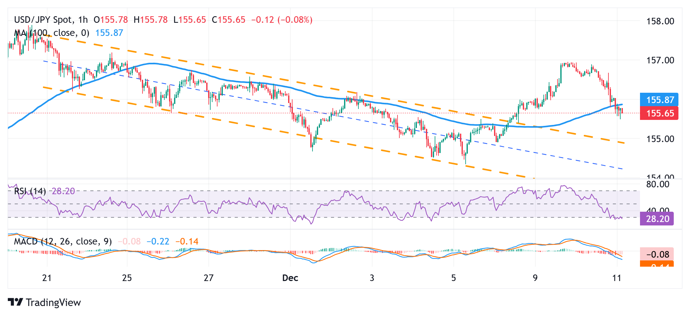 On the flip side, a sustained strength back above the 156.00 mark could lift spot prices to the 156.60-156.65 region en route to the 157.00 neighborhood, or a two-week high touched on Tuesday. Some follow-through buying should pave the way for additional gains. The USD/JPY pair might then surpass the 157.45 intermediate hurdle and aim towards challenging a multi-month peak, around the 158.00 neighborhood, touched in November.
