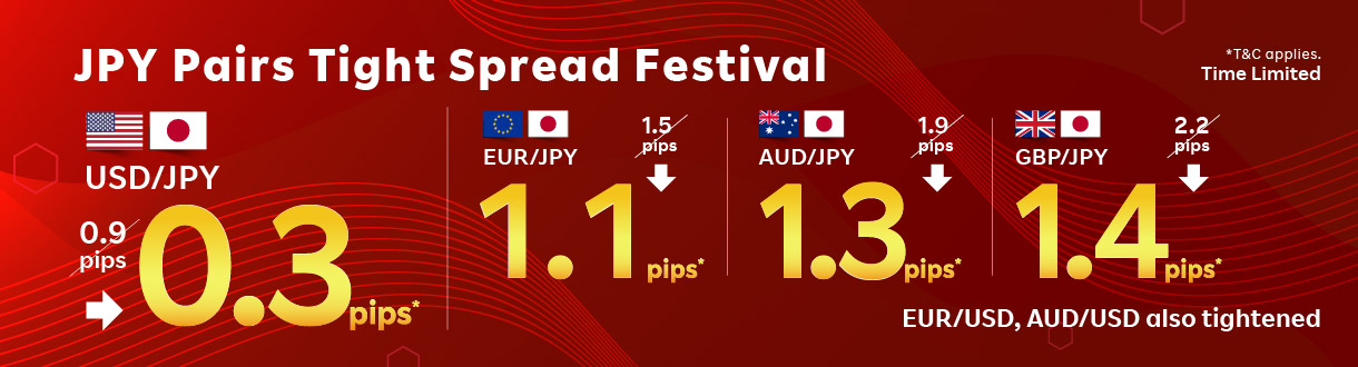 - Clients who have Eligible Account can trade USD/JPY, AUD/USD, EUR/USD, AUD/JPY, GBP/JPY,EUR/JPY with special tight spread during Campaign Period under normal market conditions.