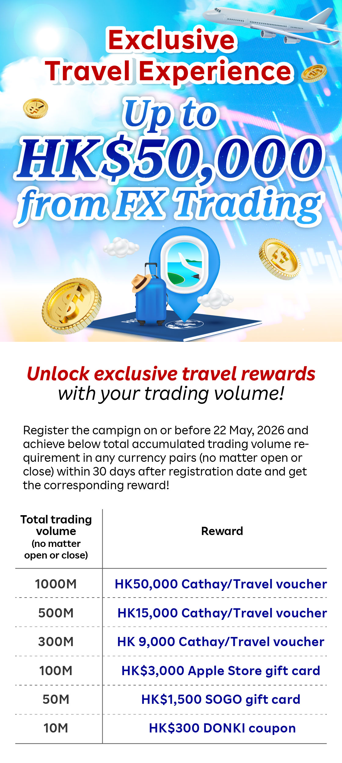 - Unless otherwise agreed, this offer cannot be used in conjunction with any other campaign, programme or promotional offer during the Campaign Period, including but not limited to FX Welcome Offer for New Client (February 2026), FX Welcome Offer for New Client (April 2026), FX Welcome Offer for New Client (May 2026) and Rakuten Securities HK Sakura Season Trading Offer Campaign March 2026. Eligible client can be entitled to the general trading points in addition to the reward of this campaign during the campaign period from the date of successful registration of “Rakuten FX Programme”.