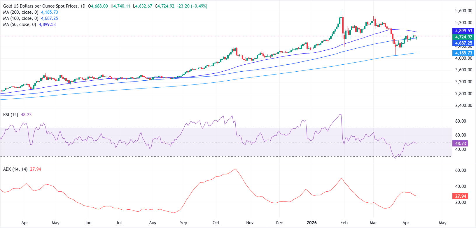 上方阻力位於100小時簡單移動均線附近的4732.63美元,若能持續突破該阻力,將有助於緩解當前的下行偏向,並為更強勁的反彈打開空間。反之,若從當前水平回落,交易者可能會關注前一交易日低點和短期波段低點,作為潛在的需求區域。