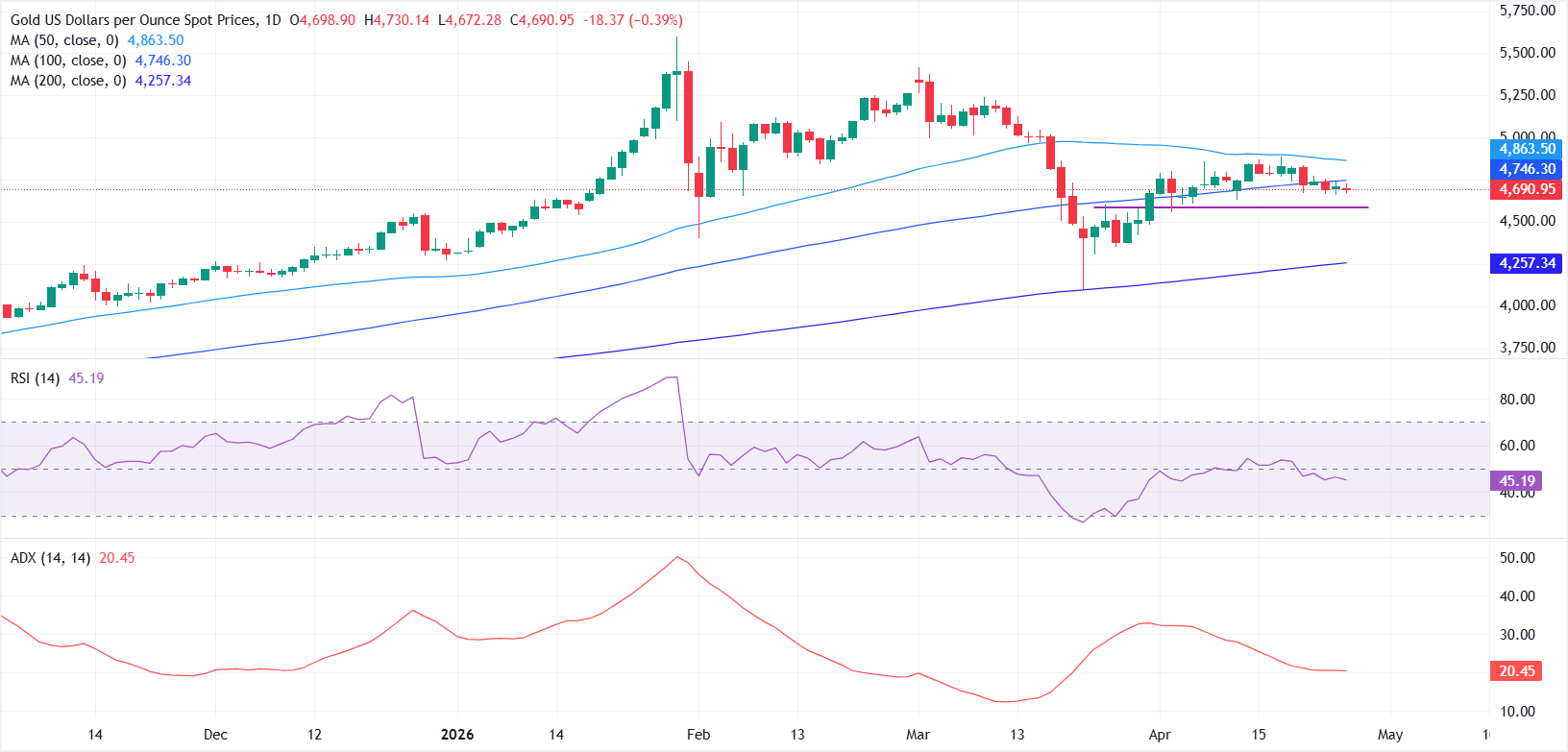 若要延續看跌走勢,賣方必須突破75.00美元關口,隨後是4月13日的日低72.61美元。若進一步走弱,下個支撐位為4月7日的日低69.82美元。