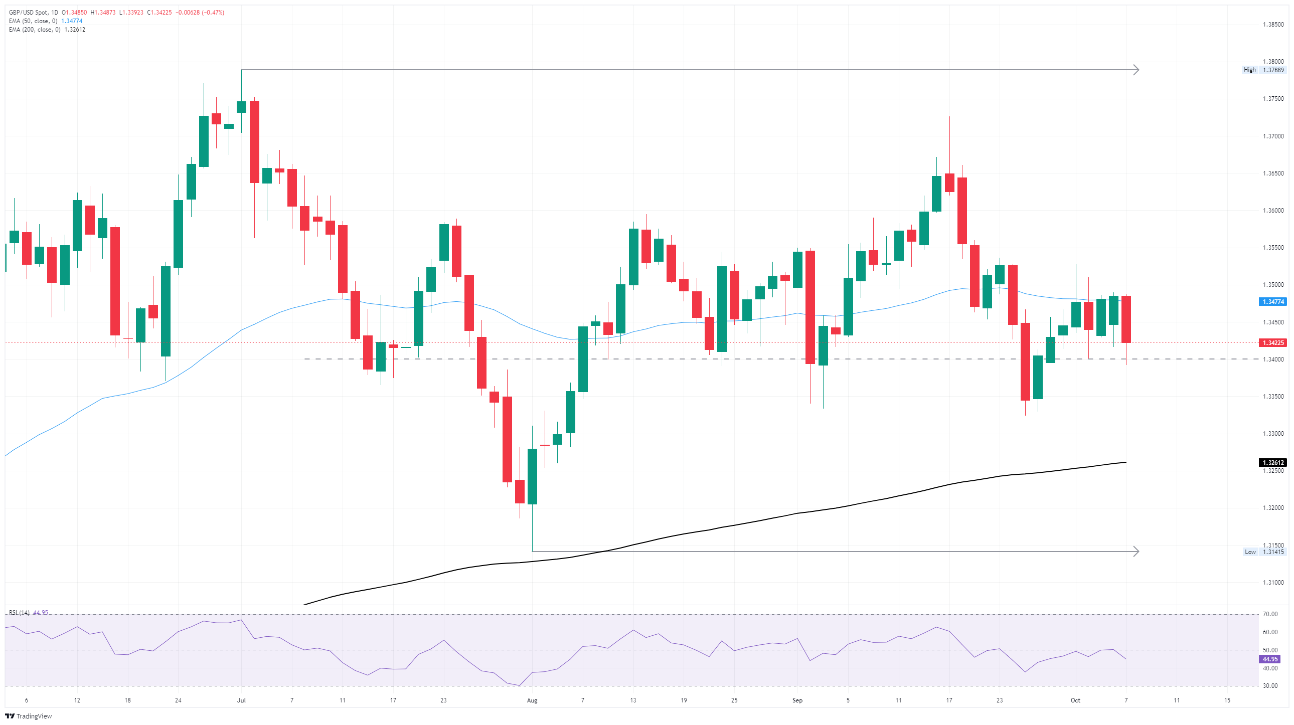 英鎊/美元在連續兩天上漲後,面臨低位1.3400s的重新賣壓。英國央行的皮爾預計將在其他空白的英國經濟日程中發表講話。