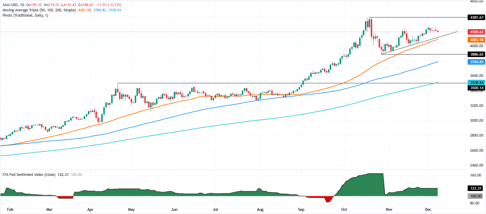 - 技術分析顯示黃金的上升趨勢依然 intact,但買家難以將價格維持在 $4,200 以上。