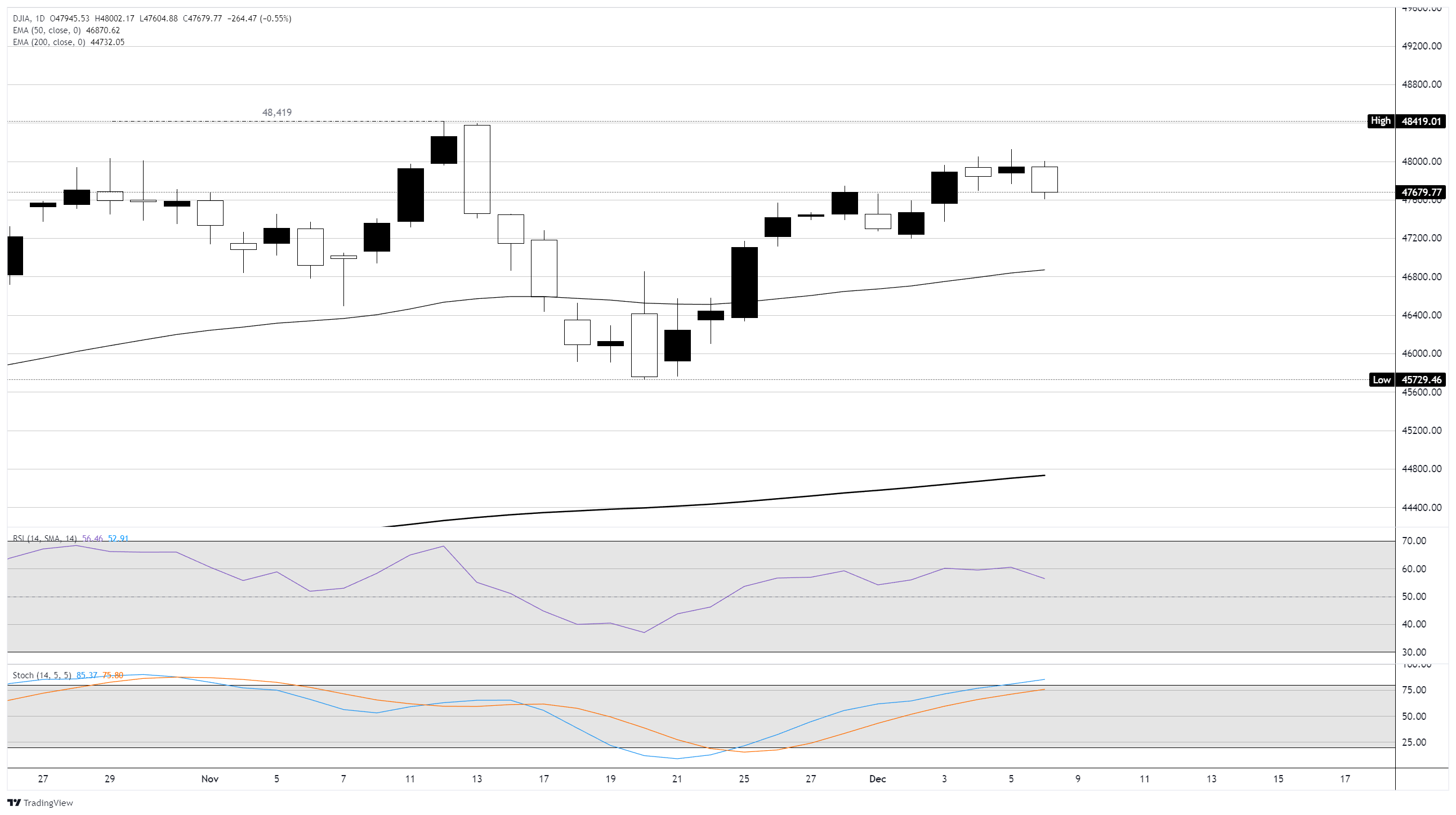 - 道瓊斯指數週一下跌約260點,跌破48,000點。