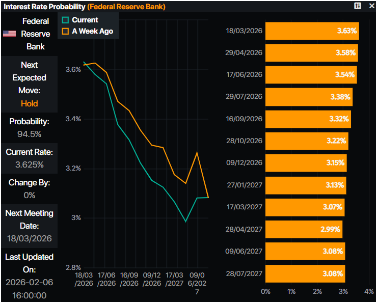 數據方面較為清淡,由於美國政府停擺,1月份的非農就業數據推遲至2月11日。密歇根大學(UoM)調查顯示,美國消費者信心有所改善,但應謹慎解讀,因為調查顯示「擁有最大股票投資組合的消費者信心激增,而沒有股票持有的消費者信心停滯在悲慘水平,」調查主任喬安娜·徐表示。