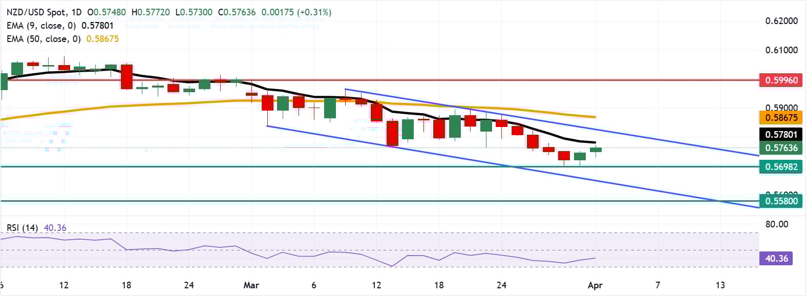 紐元/美元連續第二天上漲,週三歐洲時段交投於0.5760附近。日線圖的技術分析顯示,貨幣對仍處於下降通道形態內,表明看跌偏向持續。