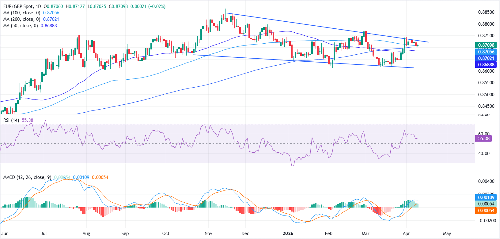 美國3月消費者物價指數(CPI)通脹報告將於週五晚些時候成為焦點。預計3月整體CPI同比上漲3.3%,此前為2.4%,主要受中東戰爭導致油價飆升的推動。美國通脹升溫的任何跡象都可能提振美元,並在短期內對該主要貨幣對構成阻力。