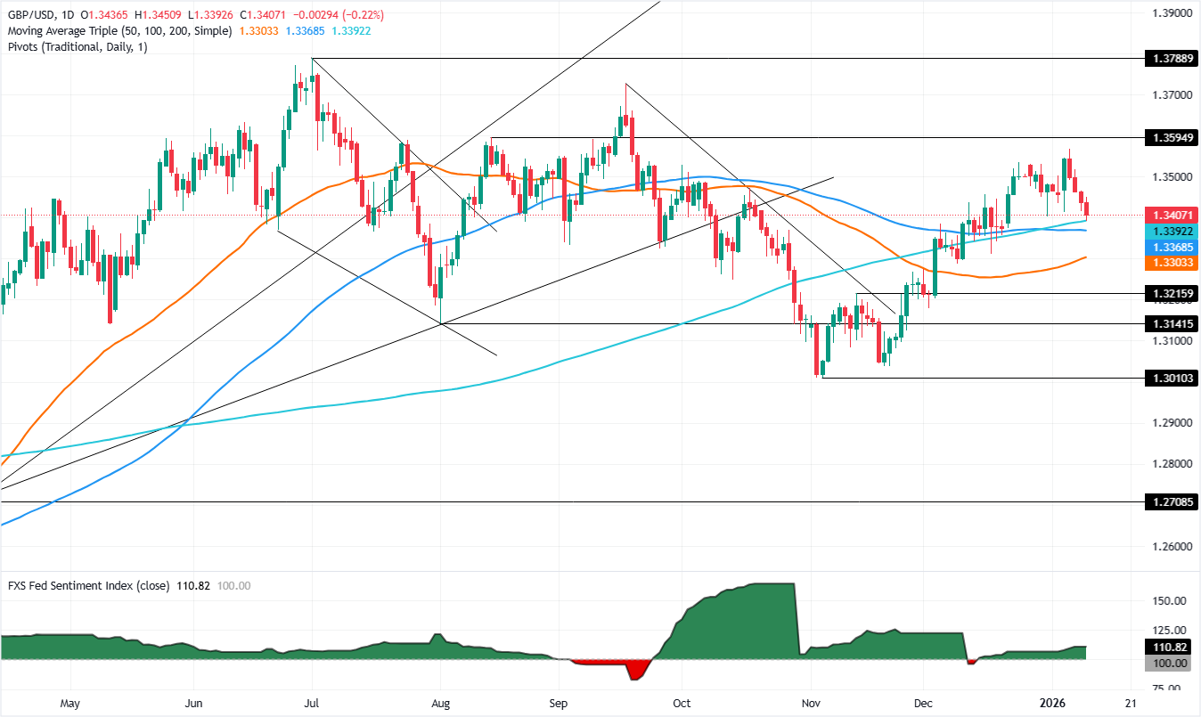 在12月份非農就業報告發布後,英鎊(GBP)在周五回落,儘管交易者減少了對1月降息的押注。撰寫時,英鎊/美元交投於1.3412,曾達到1.3451的高點。