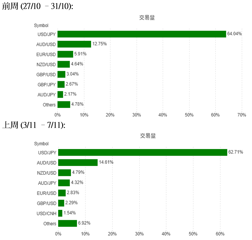 美國政府停擺持續,目前已創下歷史最長紀錄。隨著時間推移,政府停擺的影響正日益加劇。自從聯邦機構暫停發布經濟數據以來,上周五是連續第二次非農數據缺席。由於關鍵經濟指標已數周未公布,投資者不願壓重注預測美元走向,外匯市場波動率已經遠低於長期平均水平。這一僵局在上周末可能有緩和跡象:參議院共和黨領袖Thune周日在國會表示,一項旨在結束停擺的潛在協議正在逐步達成,晚些時候將進行試探性投票。美元指數在上周二上漲超過100關口後迅速受壓回落,上周五收盤時為99.55,累計下跌0.18%。