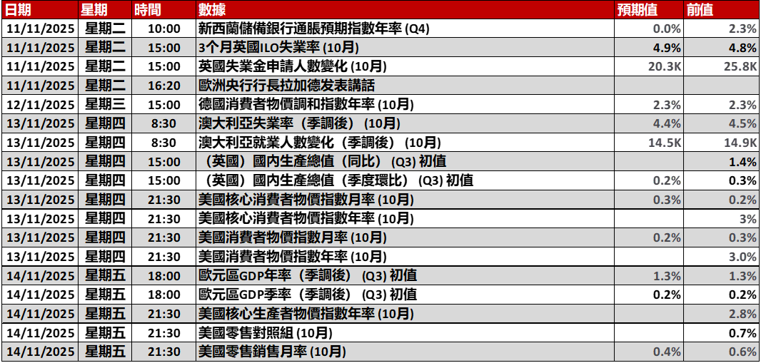 本周英國及澳大利亞將發表就業數據。屆時投資者宜留意各國經濟狀況,從而適度調整投資策略。