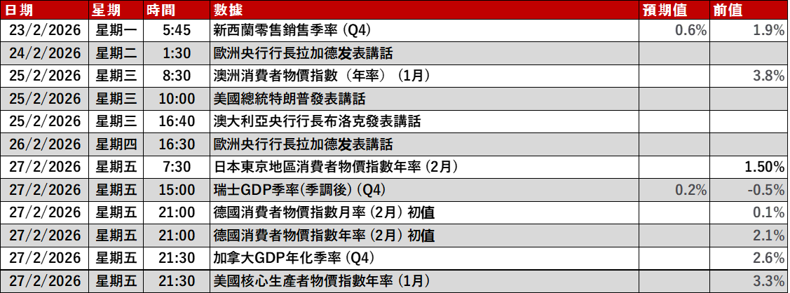 美國最高法院上周五進行裁決,以6比3的結果決定特朗普動用聯邦緊急權力法實施“對等”關稅以及以應對芬太尼販運為由加徵針對性進口關稅的做法超越了作為總統的權限。最高法院並未提及企業們如何退回關稅,接下來進口商和零售商可能會面臨一場曠日持久的鬥爭,來追回高達1700億美元的關稅。美元指數在上周五終止4日升勢,跌0.1%,上周整體升約1%。