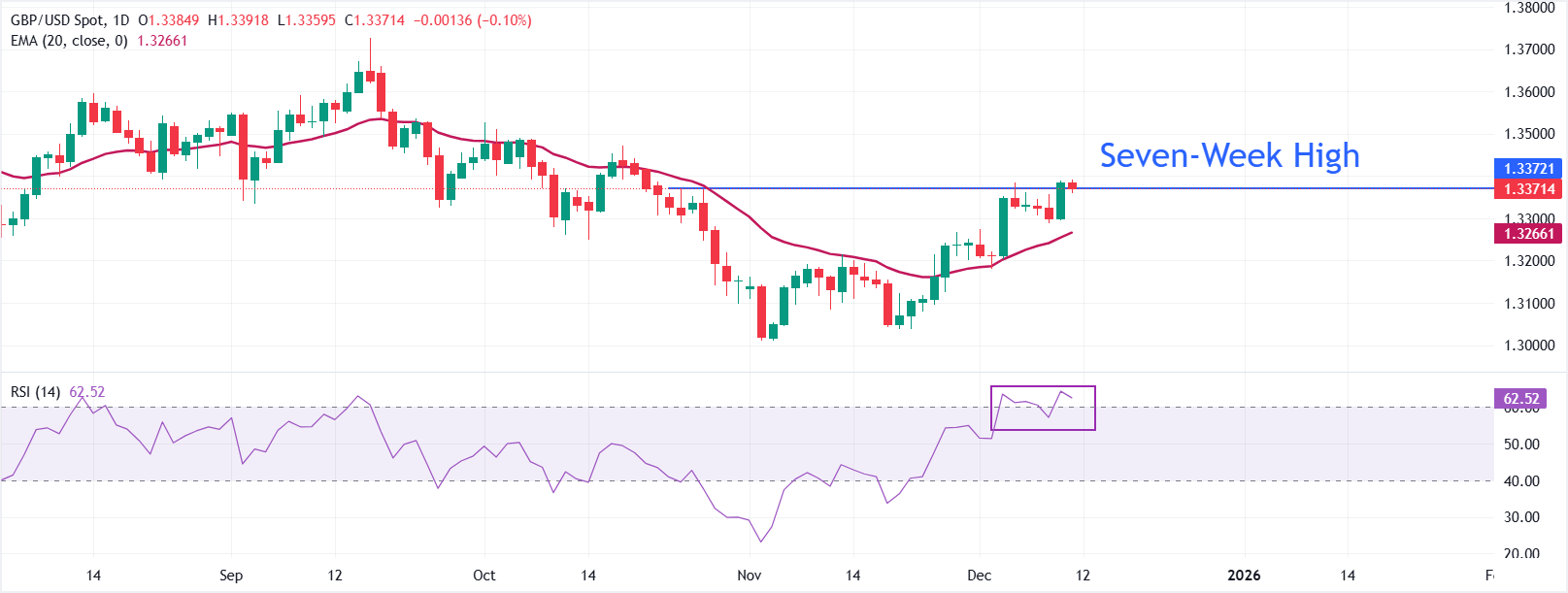 周四,英镑兑美元在1.3370附近坚挺交易。GBP/USD货币对保持在1.3266的20日指数移动平均线(EMA)之上,该均线已转向上升并支撑上涨趋势。预计回调将在这一关键水平附近找到需求。