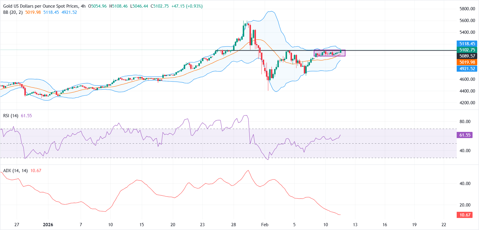黄金(XAU/USD)已回撤至周二的低点,并恢复了自1月底低点以来的上升趋势,目前多头在撰写时测试约5100美元的阻力位。贵金属在周三交易走高,受到疲软美元的支持,尽管投资者在等待1月份非农就业报告的发布时可能会保持谨慎。