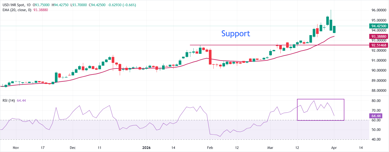美元/日元在周五亚洲时段交易中徘徊于159.60下方,进入长假复活节周末的局面对日元交易者来说极为不利。该货币对自周三接近158.50的低点反弹了约一个整点,完全由美元重新发力推动,此前特朗普总统周三晚间的讲话终结了短暂将油价拉低至每桶100美元以下的缓和预期。西德克萨斯中质原油(WTI)周四飙升约8%至接近110美元,国债收益率走强,美联储降息预期进一步减弱。所有这些因素均对日元不利。但美元/日元越接近160,东京的警告声越大,持多头的风险也越高。