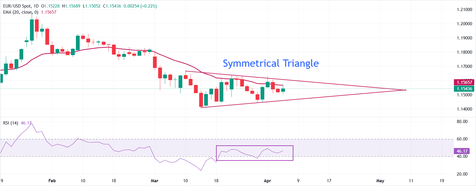 即时阻力位于20日EMA附近的1.1566,下降趋势线在1.1600附近形成压力;若日线收盘价突破该区域,将打开通往3月10日高点1.1667的空间。下方初步支撑位于接近1.1500的上升趋势线,若跌破该水平,价格将进一步下探3月低点1.1411。