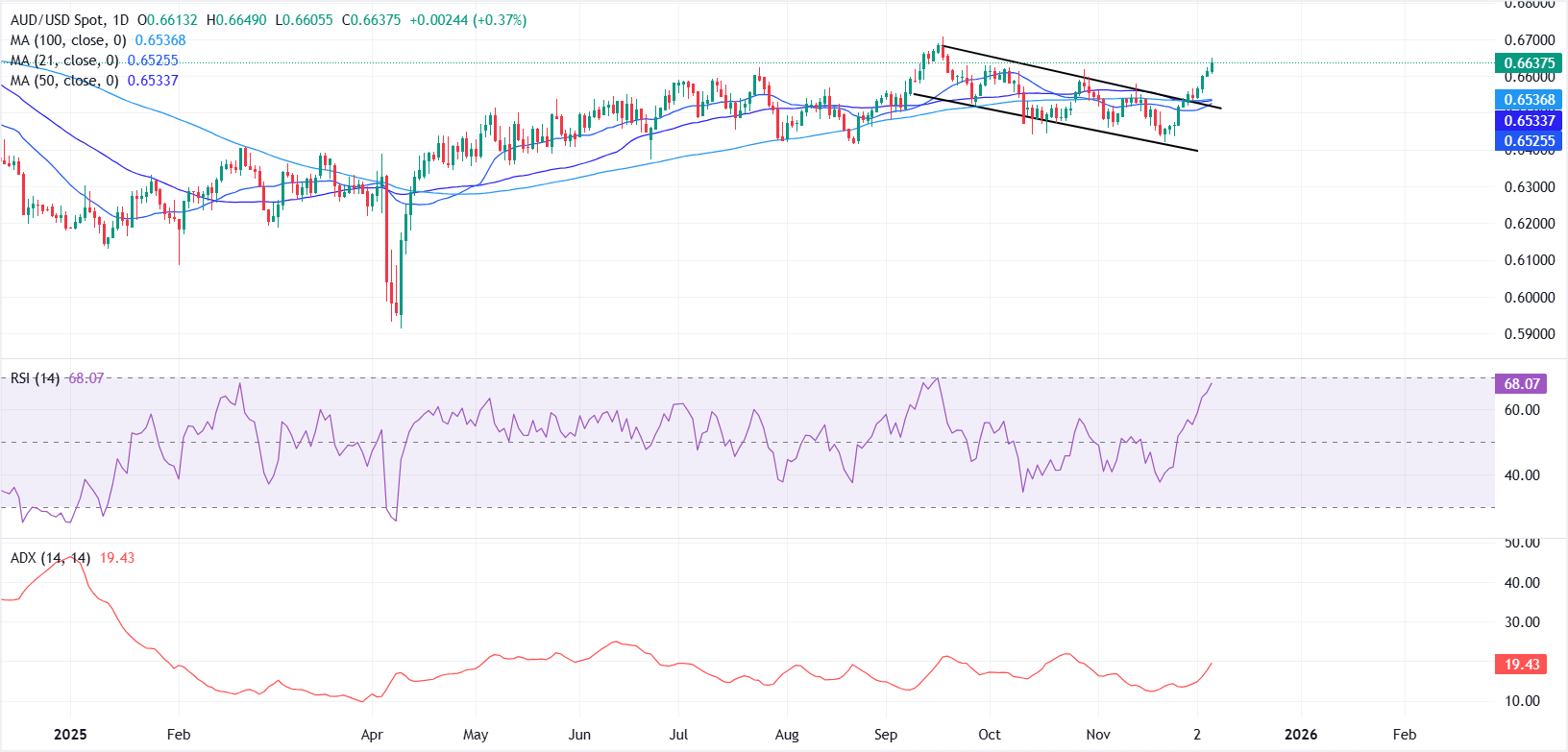 截至撰写时,AUD/USD交易约为0.6637,正朝着连续第二周的上涨迈进。