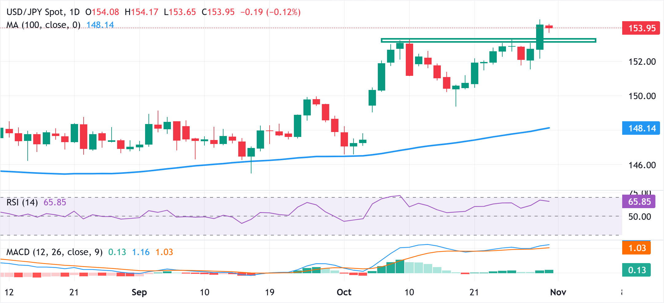 美元/日元多头占据上风;突破153.25-30的可能性仍然存在