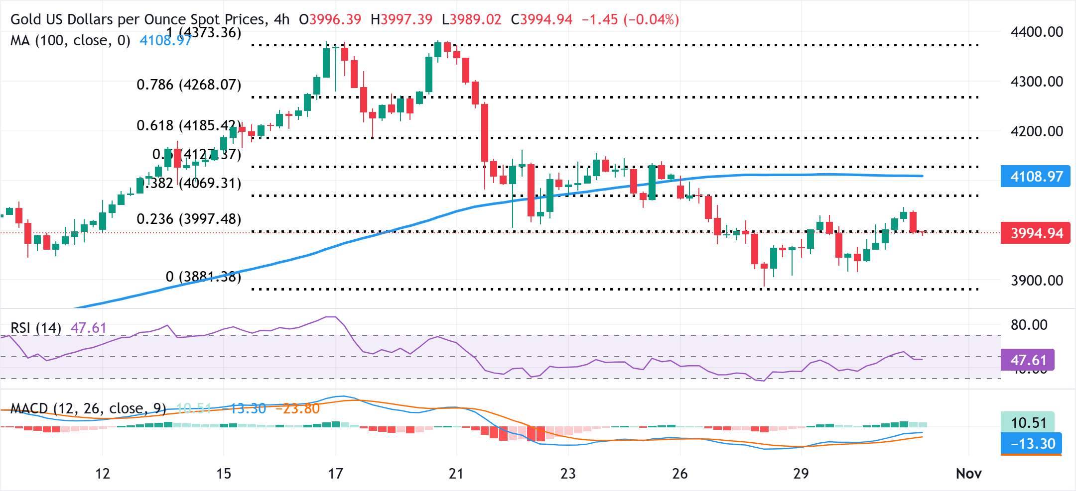 - 美国政府停摆已进入第五周,国会在共和党支持的拨款法案上陷入僵局,助长了经济担忧。这可能会阻止美元多头进行激进押注,而持续的地缘政治风险可能为避险贵金属提供一些支持,并帮助限制进一步的损失。