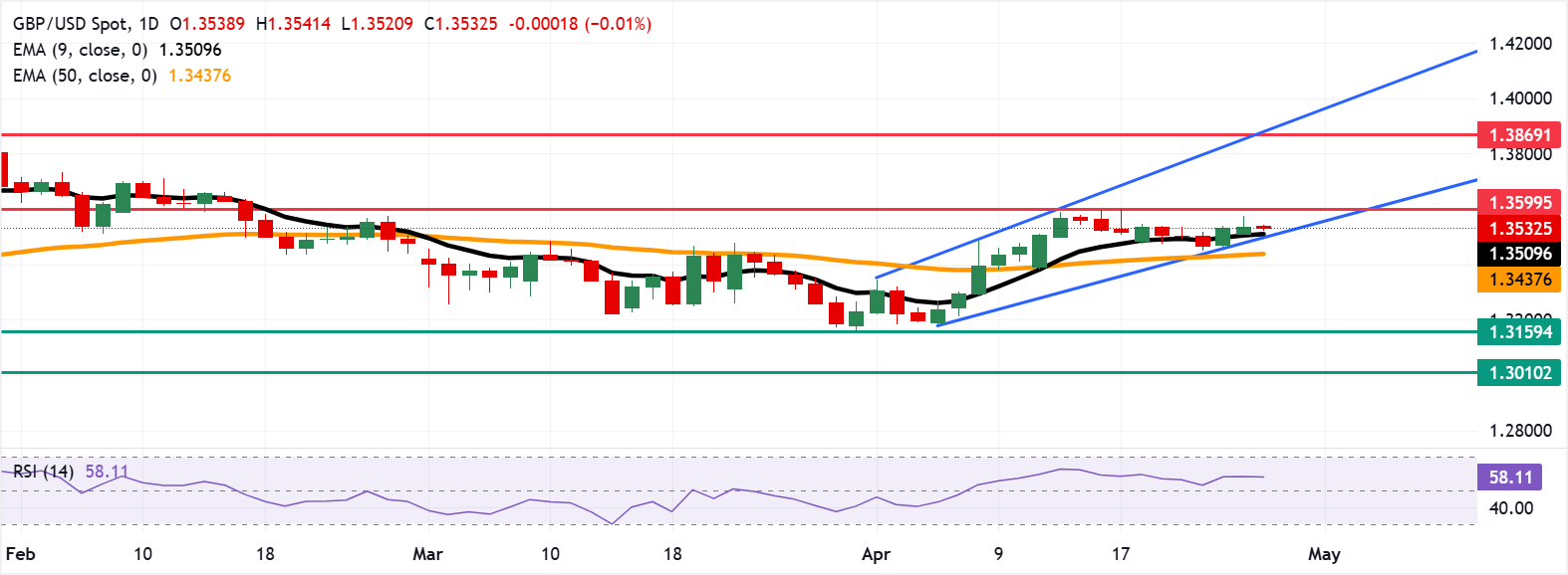 英镑/美元在周一北美时段录得温和涨幅,上涨0.19%,因美伊谈判陷入停滞,市场情绪依然脆弱,反映在美国股市走低。该货币对在触及日内低点1.3506后反弹,现交投于1.3548。
