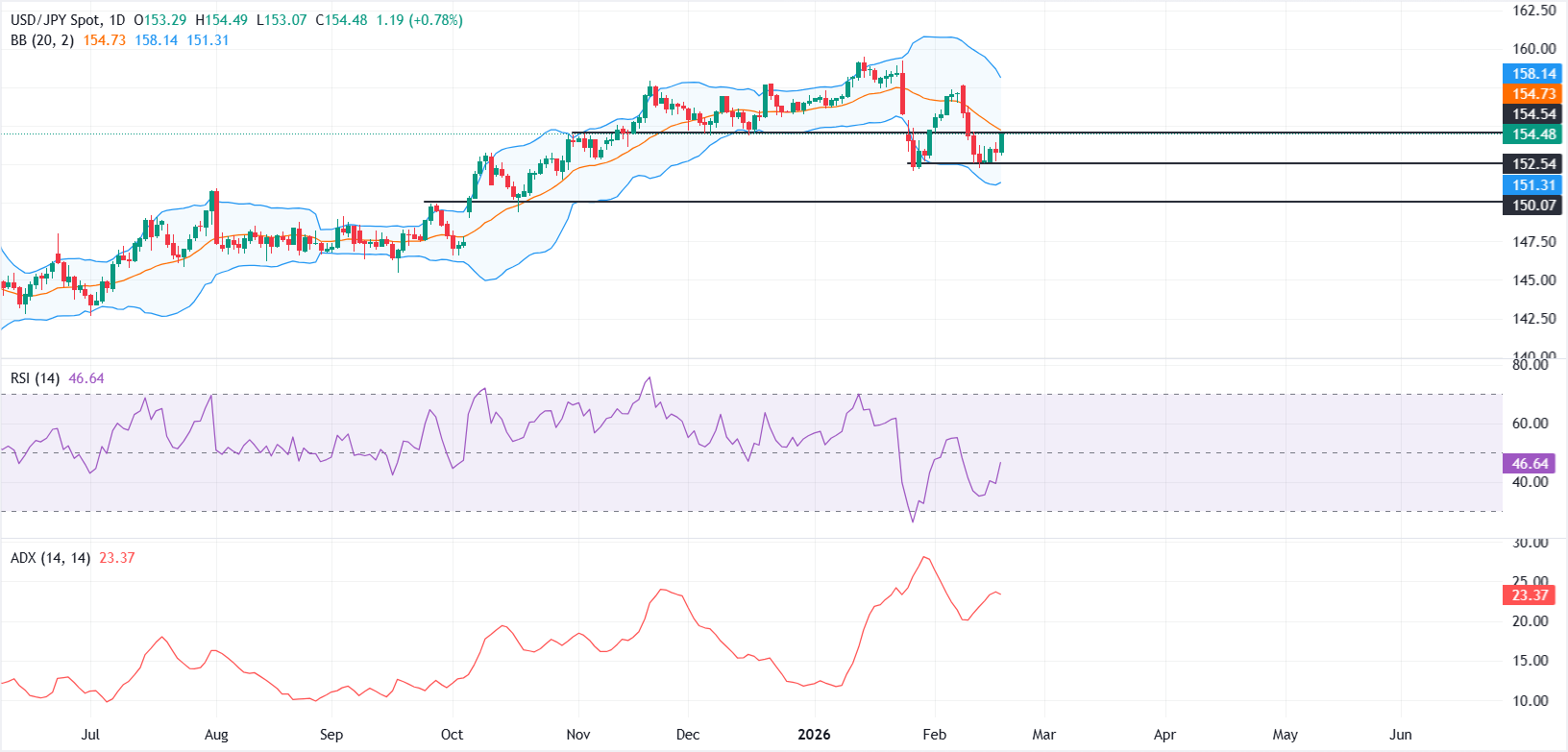 14日相对强弱指数(RSI)为49.55(中性),从近期读数中略有上升,表明稳定而没有明确的看涨转变。