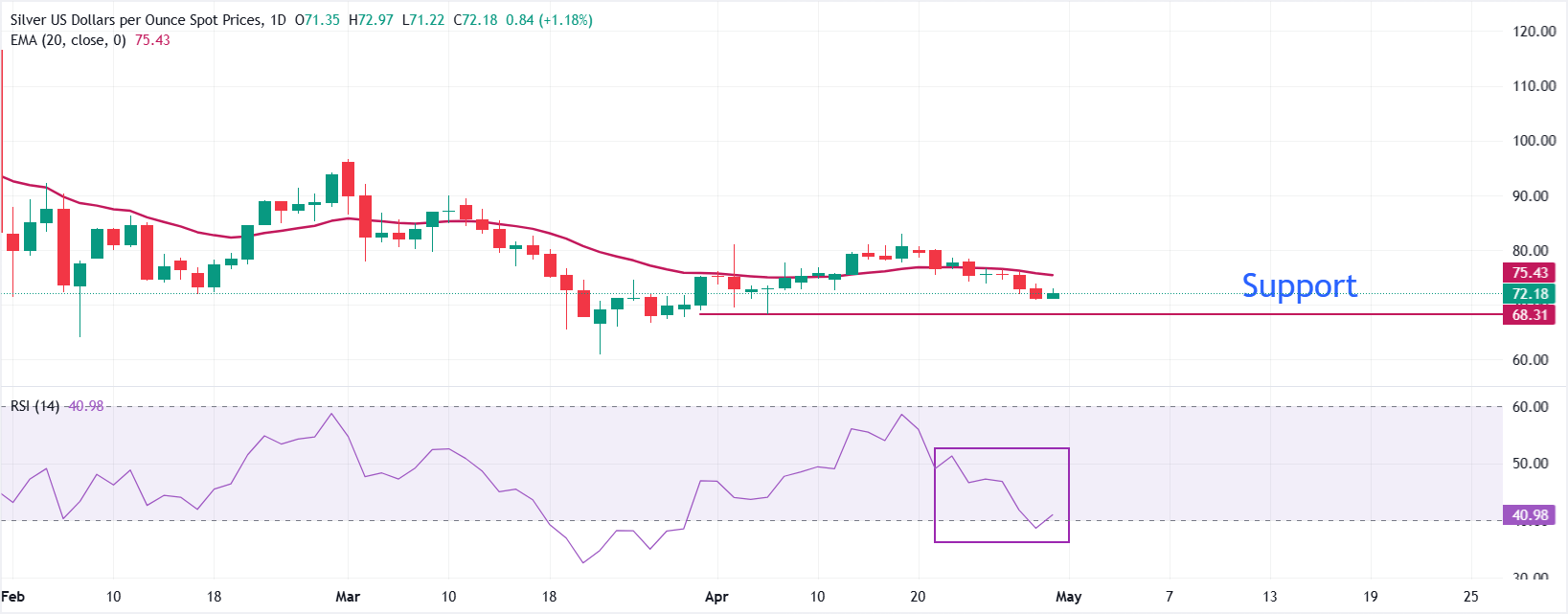 周三欧洲早盘时段,银价(白银/美元)上涨至约73.85美元。市场可能在美国联邦储备委员会(美联储)利率决议前转为谨慎。交易商还将密切关注美伊持续冲突的最新进展。