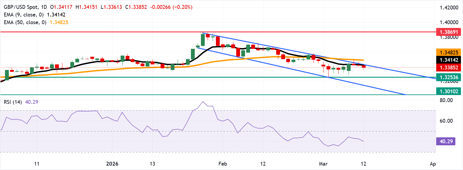 - 近期阻力位在9日指数移动均线1.3414附近。