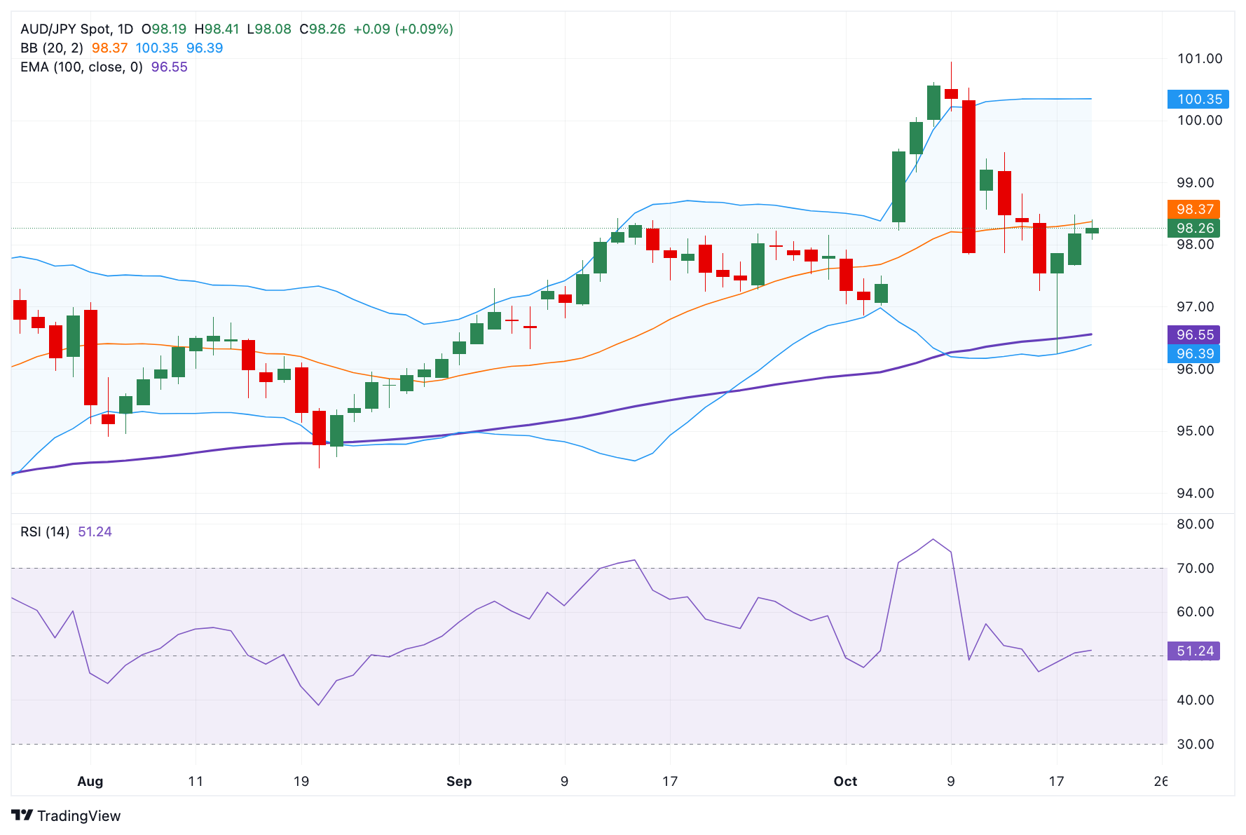 - 澳元/日元在周二欧洲早盘时段小幅上涨至约98.25。
