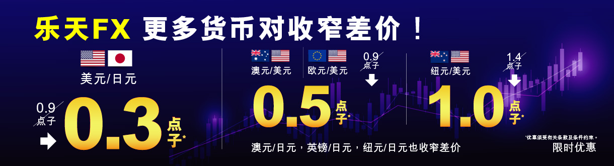由2025年11月3日(开市)至2025年11月28日(收市)期间,乐天FX的7组特选货币对买卖差价将会收窄。不限交易量或交易次数,您都可于推广期间以超窄差价进行外汇交易。