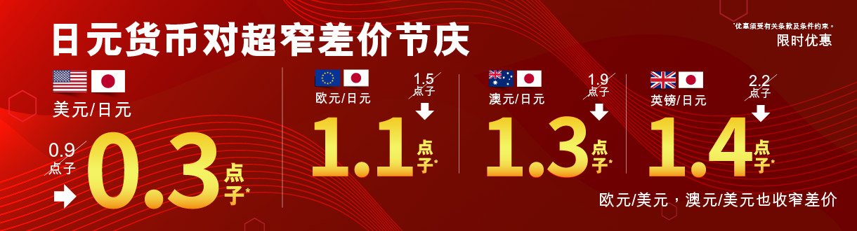 3. 持有合资格账户的客户可於推广期内的正常市场情况下以超窄买卖差价交易美元/日元丶澳元/美元丶欧元/美元丶欧元/日元丶澳元/日元丶英镑/日元货币对。