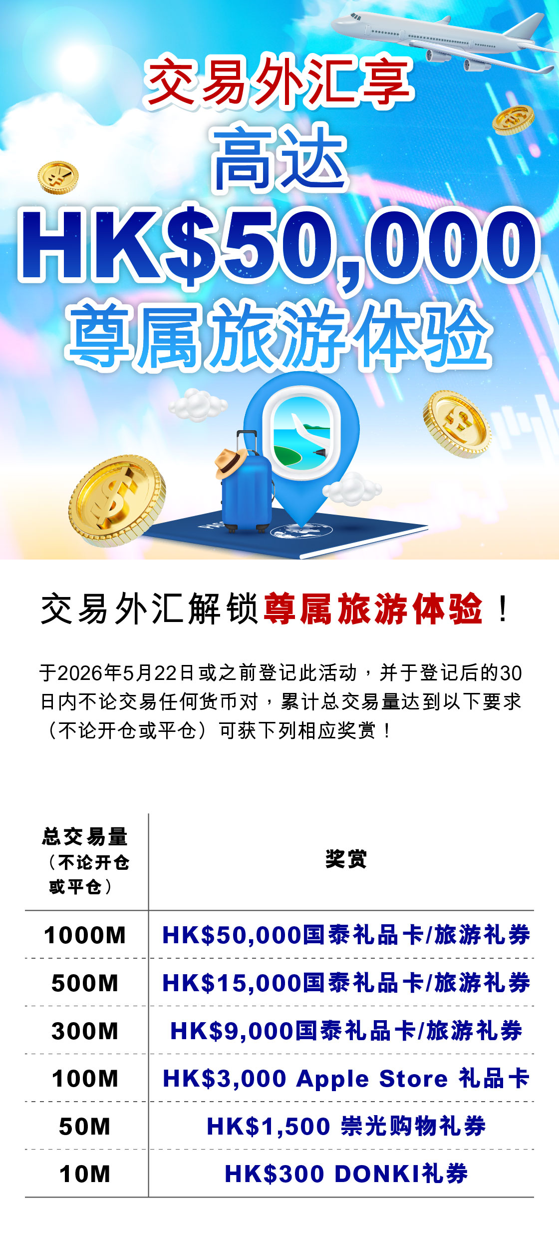 1,000M | HK$ 50,0 00国泰礼品卡 / 旅游礼券 |